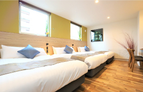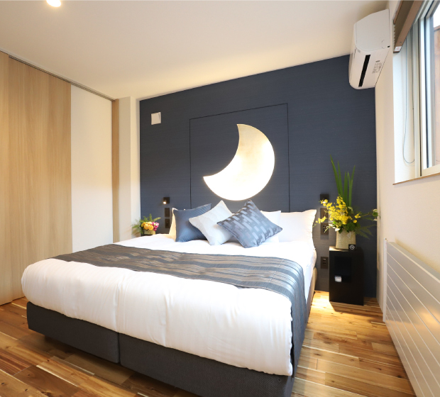 1階の主寝室にはクイーンサイズのベットを配置、ゆったりと快適な睡眠をご提供します。2階の寝室二部屋にはダブルベットを3台ずつ配置、大人数でも宿泊することができます。