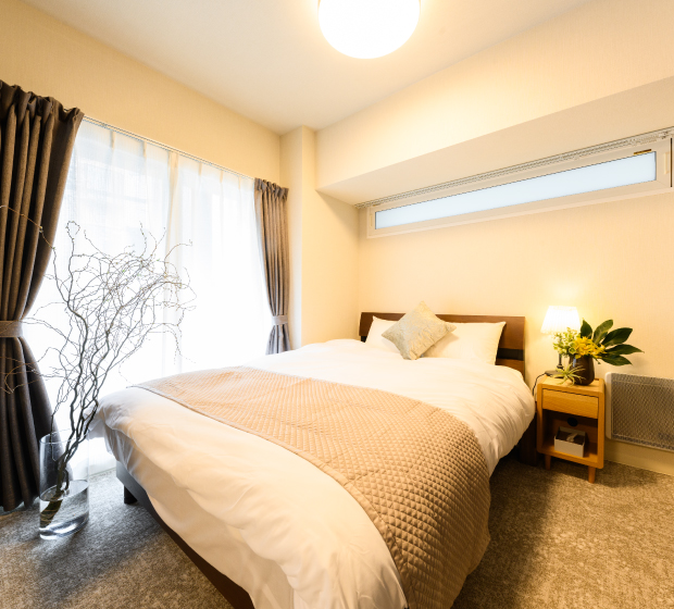 寝室にはゆったりサイズのダブルベットを配置し快適にお休み頂けます。