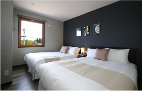 1階の主寝室にはクイーンサイズのベットを配置、ゆったりと快適な睡眠をご提供します。2階の寝室二部屋にはダブルベットを2台ずつ配置、大人数でも宿泊することができます。